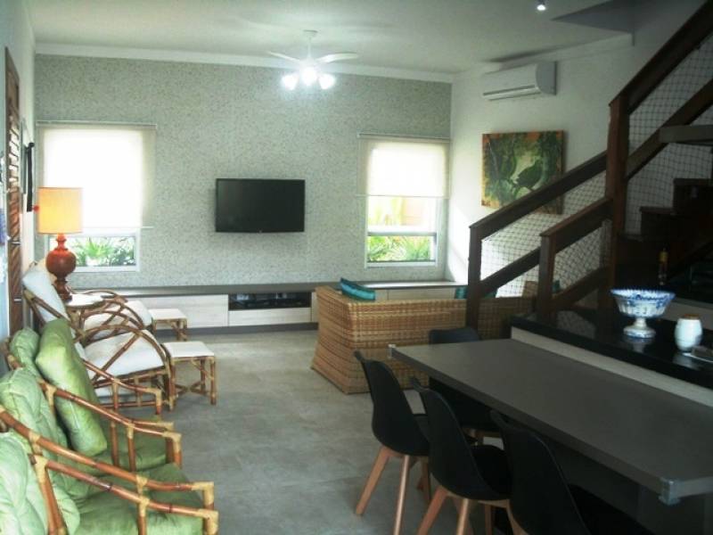 Descrições: Imóvel com Área Construída de 180m² em Condomínio Fechado de 15 Casas- Com Jardim, Casa de Caseiro, Zeladoria, Portaria 24h, Portão Elétrico, Câmeras de Monitoramento, Ducha Externa,Interfone, Serviço de Praia - Descrição: 1 Sala (para 2 ambientes), 1 Cozinha Americana, 4 Dormitórios (sendo Suítes), 4 Banheiros, 1 Lavabo, Área de Serviço/Lavanderia, Quintal, Sacada, Sky TV, VarandaGourmet com Churrasqueira,Piscina Privativa, Ducha Externa Privativa, Boiler (Aquecimento Elétrico), Garagem para 2 Veículos- Mobiliado com Ar-Condicionado e Ventilador- Distante a 370m da Areia da Praia.